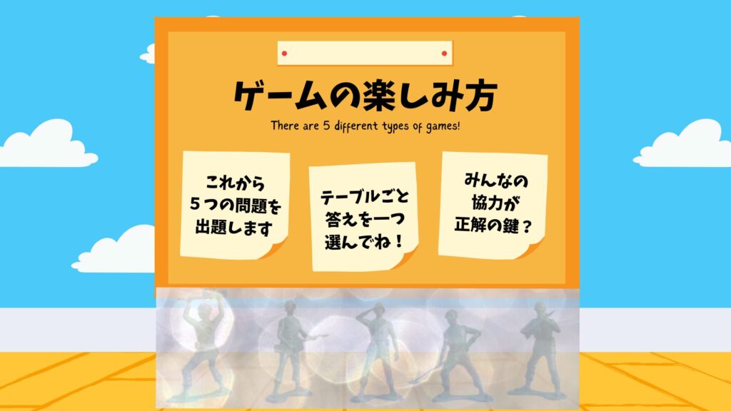 テーブルごとに解答用の札を用意することも考えましたが、