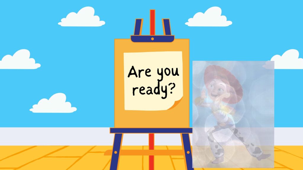 私たちは会場に投影するスライドや音楽をトイストーリー風の演出に。