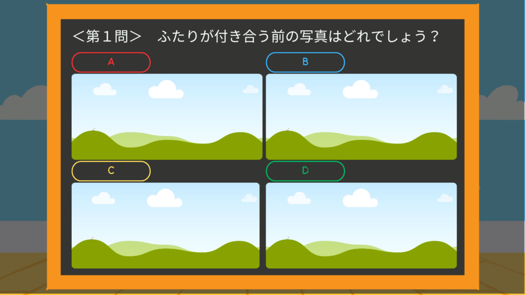 ふたりの距離感や表情をヒントに推理してもらいました。